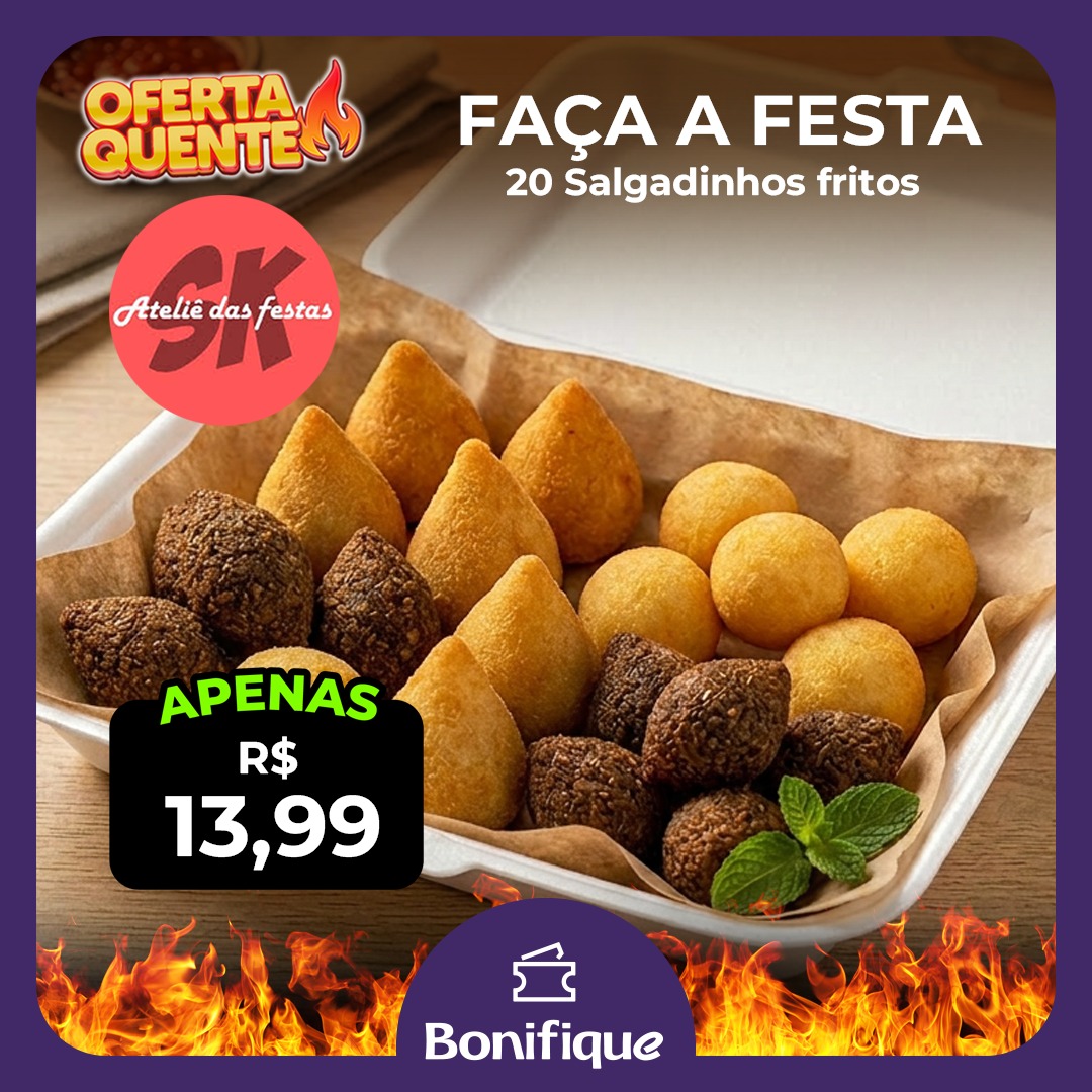 Garanta agora mesmo um dos melhores salgadinhos da cidade por um preço especial e 5% de cashback, dinheiro de volta