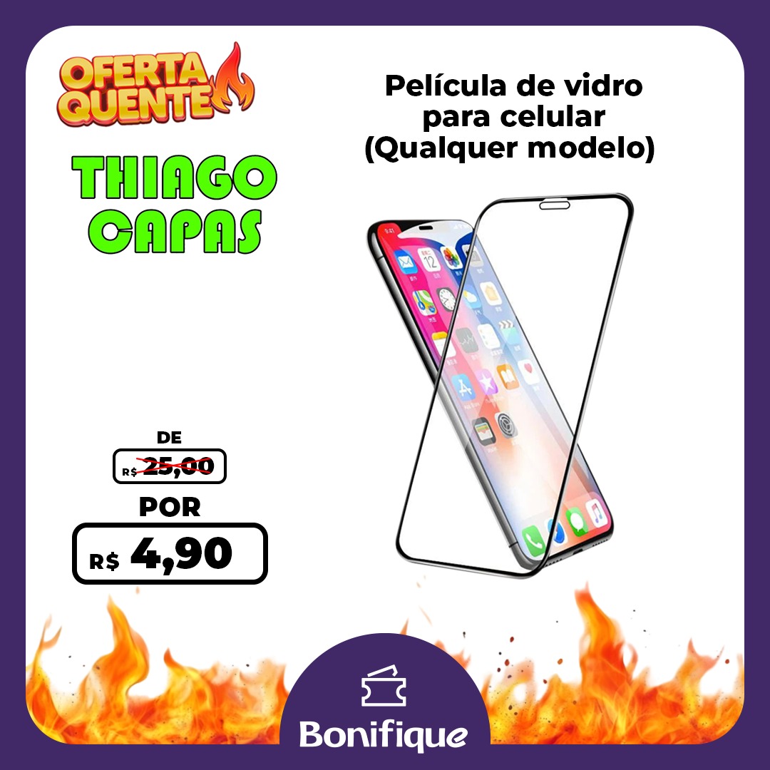Oferta relâmpago na Thiago Capas! Películas de vidro por apenas R$4,99. Retire na unidade da Barão do Rio Branco,336
