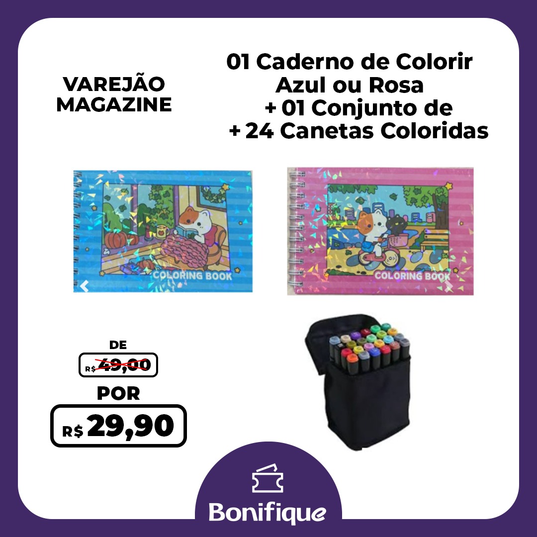 POUCAS UNIDADES PARA ESCOLHER A COR DO SEU CADERNO DE COLORIR AZUL OU ROSA + 24 CANETAS COLORIDAS + CASHBACK