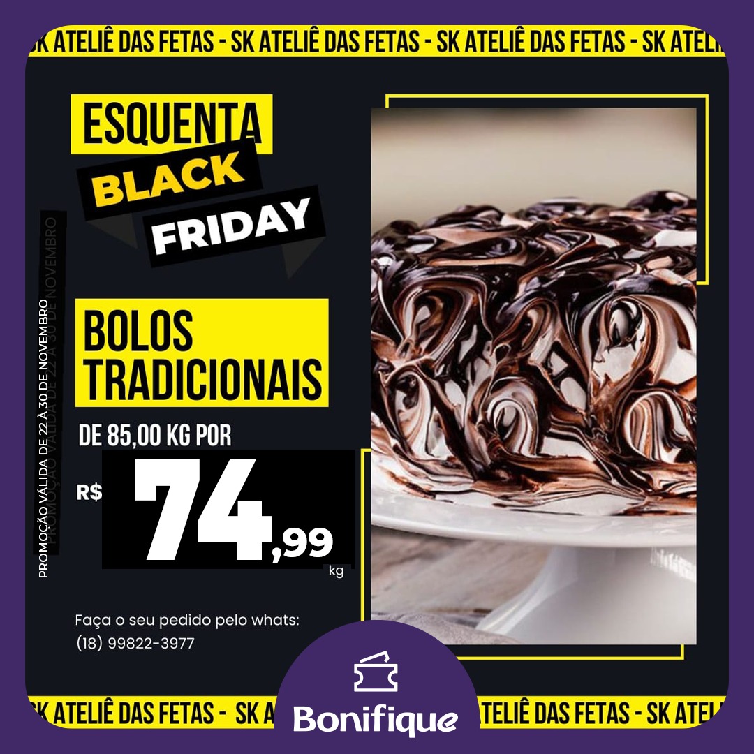 Black Friday chegou na SK Ateliê das Festas com ofertas deliciosas: nesta, o quilo do bolo tradicional sai por R$ 74,99
